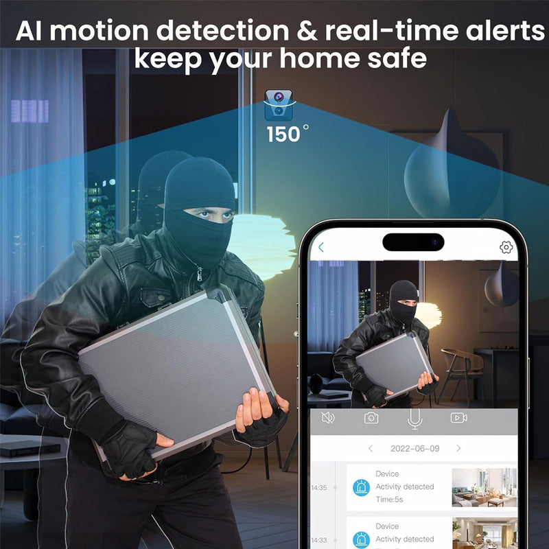 VÍDEO HD CRYSTAL-CLEAR 1080P - Capture todos os detalhes com imagens nítidas e de alta definição. A lente grande angular de 150° garante uma cobertura abrangente, reduzindo os pontos cegos. Comumente usado para segurança comercial e doméstica, bem como monitor de bebê, câmera interna para crianças, câmera de monitor de animais de estimação e usado para gravação de detecção de movimento para cuidar de idosos.