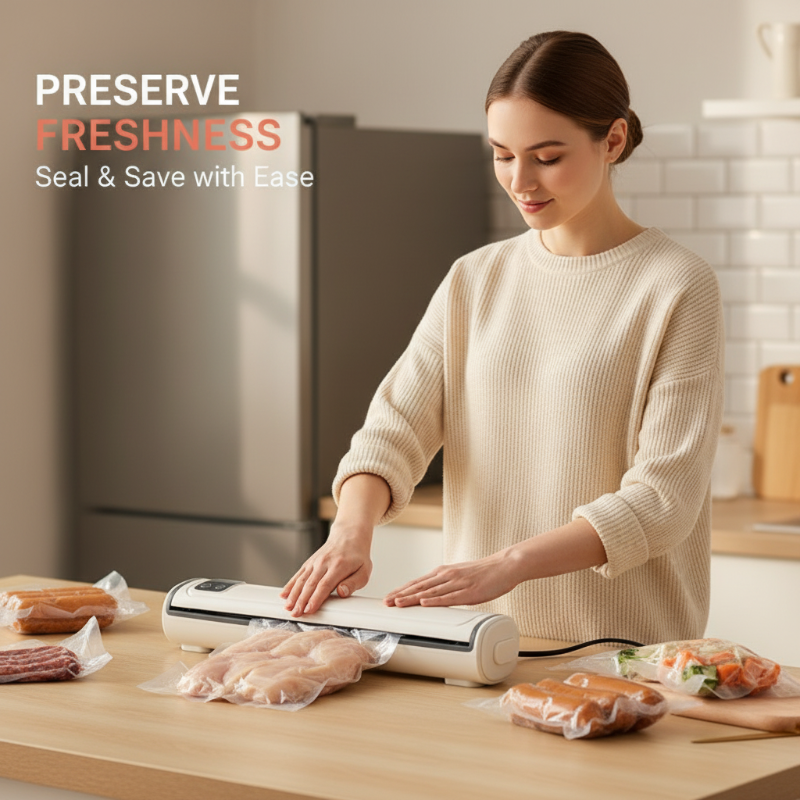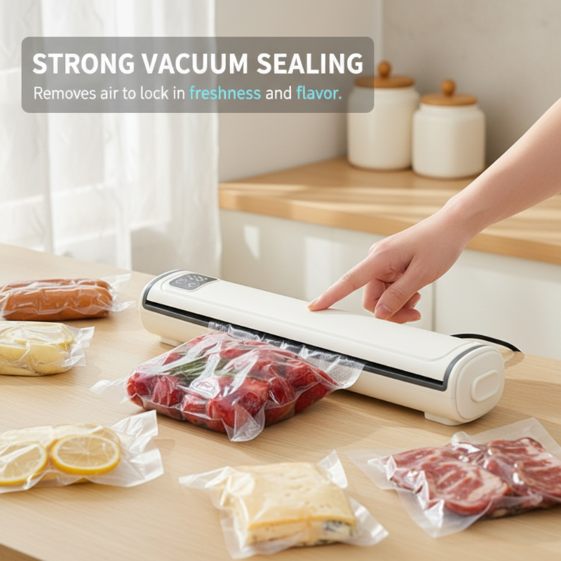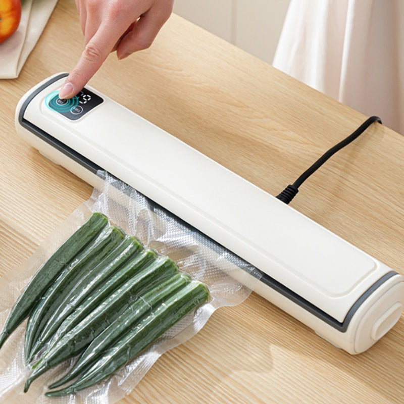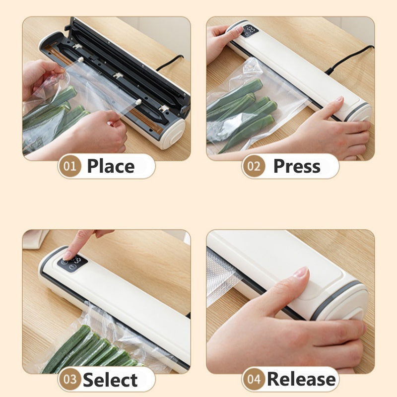 OPERAÇÃO AUTOMÁTICA COM UM TOQUE - Simplifique o processo de preservação de alimentos. Esqueça configurações complicadas; basta pressionar um botão e a máquina aspira e sela automaticamente, tornando incrivelmente fácil prolongar a vida útil de seus mantimentos e reduzir o desperdício de alimentos.