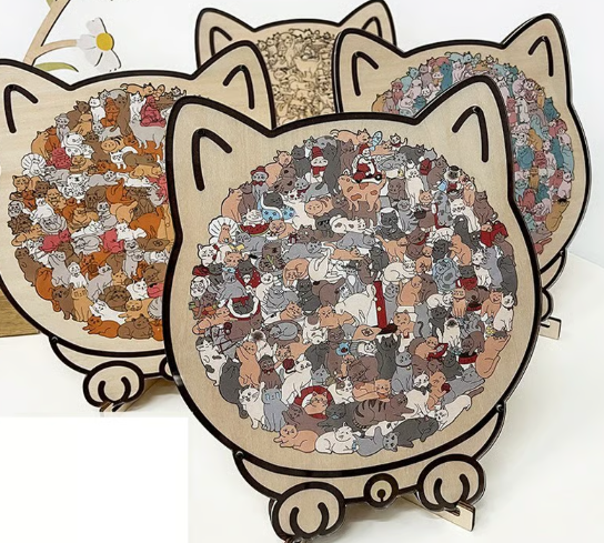 🎁Promoção de Natal 49% DE DESCONTO🎅Quebra-cabeça de madeira em forma de gato com 135 peças nas cores Morandi