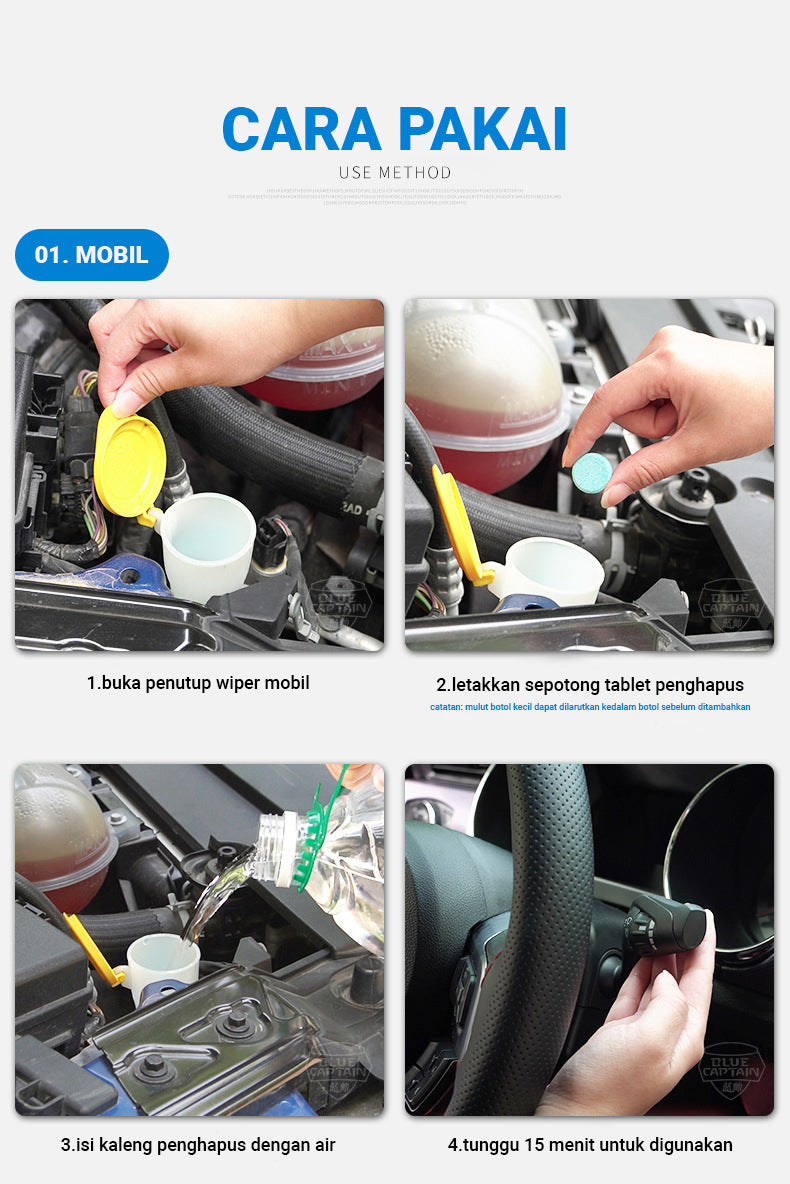 SOLUÇÃO DE LIMPEZA VERSÁTIL - Estas pastilhas não são apenas adequadas para o seu veículo, mas também excelentes para limpar superfícies de vidro em casa. Use a solução preparada em janelas, espelhos e mesas de vidro para criar um brilho brilhante e sem riscos em sua casa.