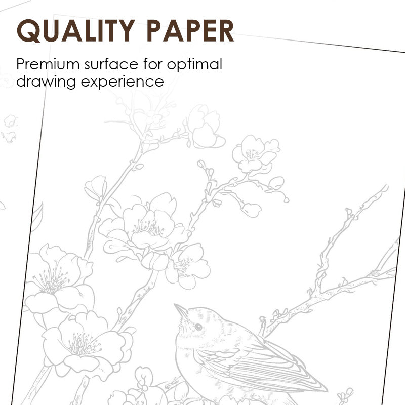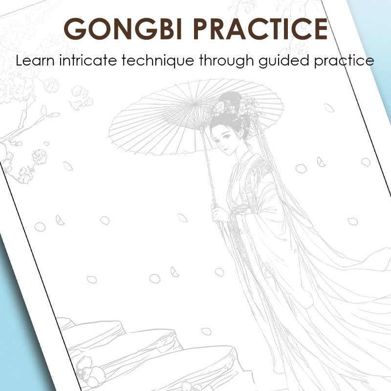 PRÁTICA DE RASTREAMENTO DE GONGBI - Enfatizando o intrincado estilo Gongbi, este livro orienta os alunos por meio de exercícios de rastreamento detalhados. Ao replicar composições clássicas, os usuários podem compreender a pressão do pincel, a variação das linhas e o equilíbrio da composição. Este método permite que os alunos internalizem técnicas tradicionais enquanto dominam gradualmente as nuances da pincelada refinada.