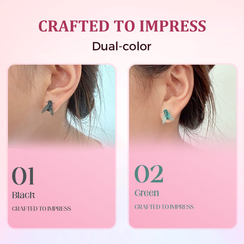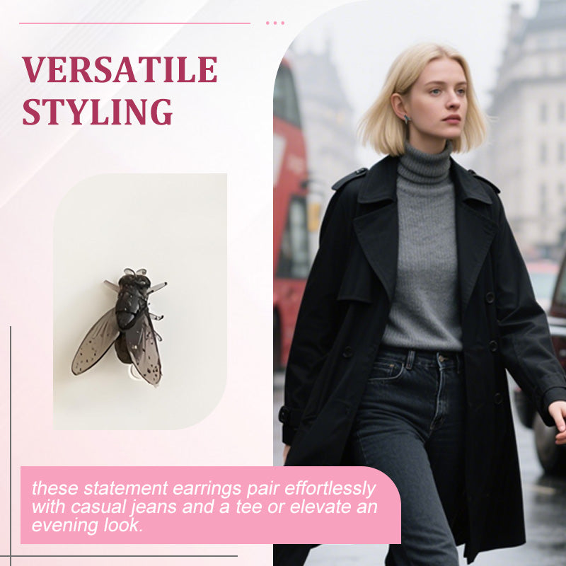 DESIGN DIGNO, FAÇA UMA DECLARAÇÃO - Quem disse que as joias têm que ser chatas? Estes atrevidos brincos em forma de mosca são um ponto de partida para uma conversa, combinando arte ousada com diversão lúdica. Perfeito para criadores de tendências que ousam ser diferentes – espere elogios a cada passo!