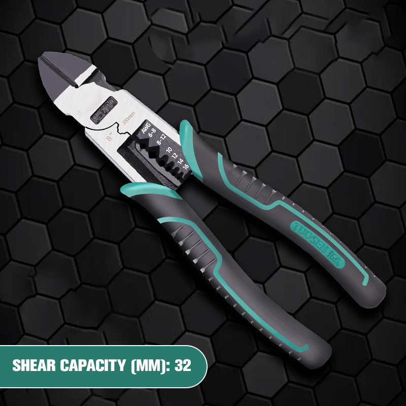 VERSATILIDADE ÚTIL: Esses cortadores de fio são tudo-em-um e podem ser usados como cortadores de fio, descascadores de fio, crimpadores e torcedores de fio, proporcionando conveniência completa para uma variedade de tarefas elétricas e DIY.
