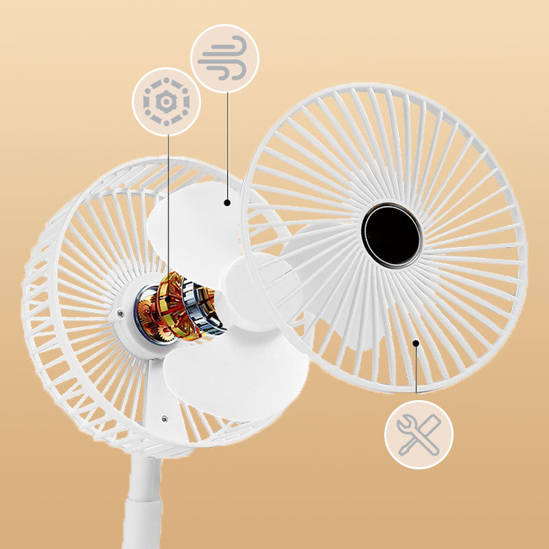 ENTREGA DE AR OMNIDIRECIONAL: O ângulo de 180° pode ser ajustado, permitindo que o ventilador distribua uniformemente o ar frio em diferentes direções, melhorando o efeito geral de resfriamento.