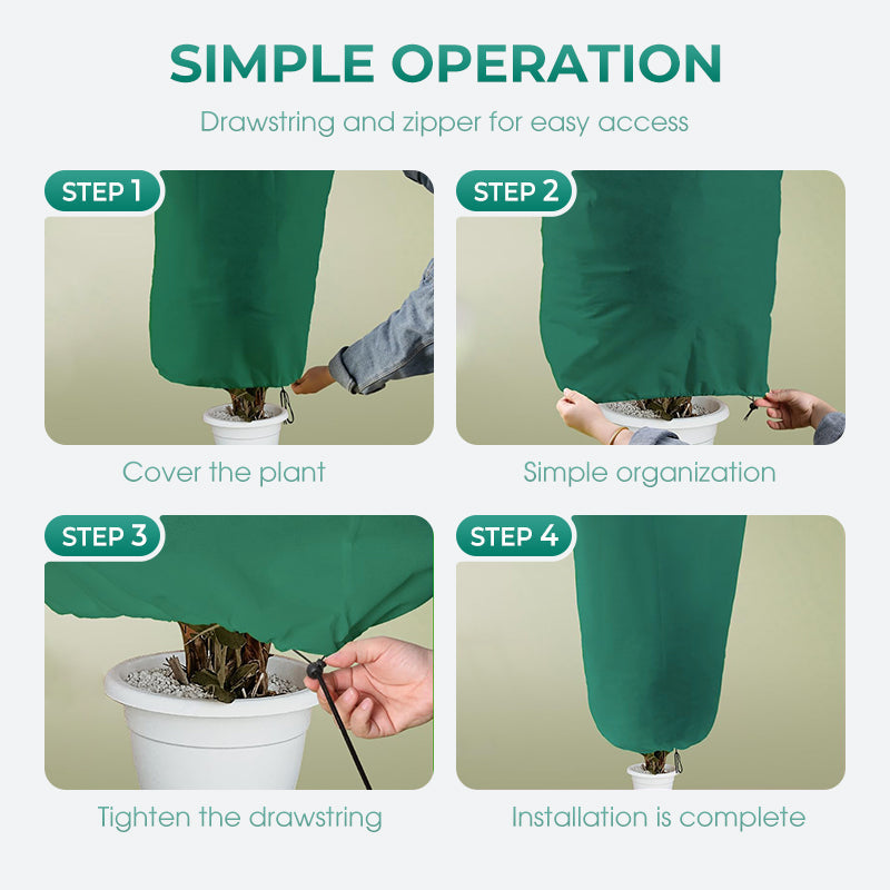 ACESSO FÁCIL - Equipado com um cordão conveniente e fecho de zíper. Este design permite aplicação e remoção sem esforço e acesso rápido às plantas para irrigação ou manutenção, melhorando a experiência do usuário.