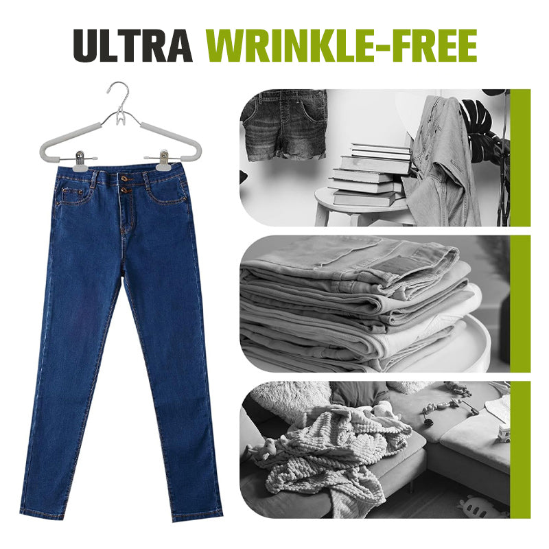 CLIPES MULTIFUNCIONAIS – Cada cabide possui dois clipes, perfeitos para segurar saias, calças, shorts ou acessórios, proporcionando uma pegada segura sem danificar suas roupas.
