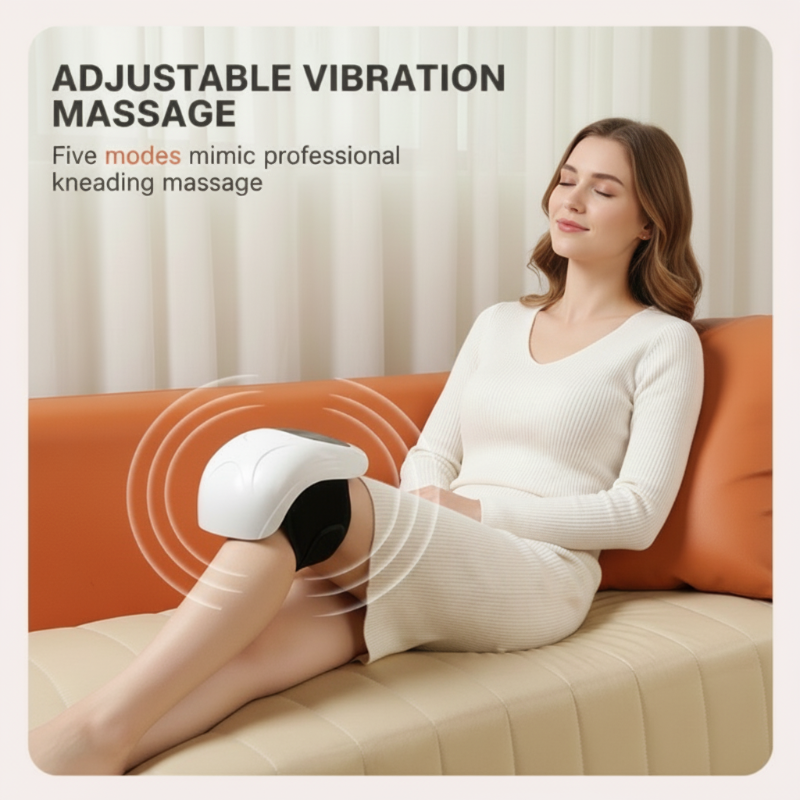 MASSAGEM SURROUND 3D - O design ergonômico envolve totalmente o joelho, proporcionando uma massagem 3D abrangente que cobre uma grande área. Ele atinge com precisão pontos de acupuntura vitais para aliviar efetivamente a pressão e a tensão, restaurando o conforto e a mobilidade.