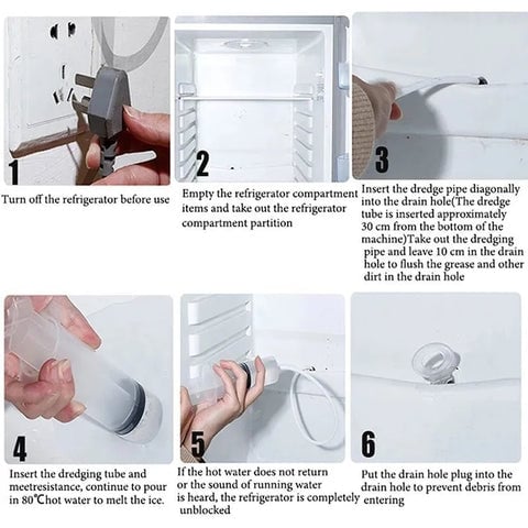 1/3/5 Conjunto * Kit de Ferramentas para Limpeza de Drenagem da Geladeira (Contém escova de drenagem, mangueira, seringa, colher de gelo, desentupidor)