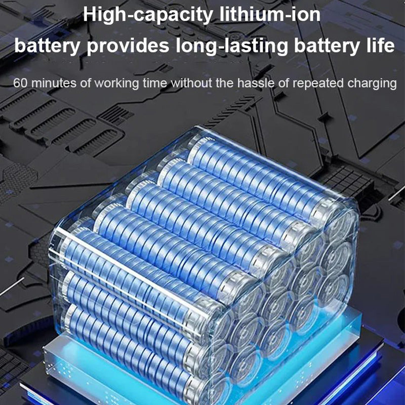 USO DURADOURO: Vem com uma bateria de lítio de alta capacidade que proporciona uso duradouro sem a necessidade de recargas repetidas.