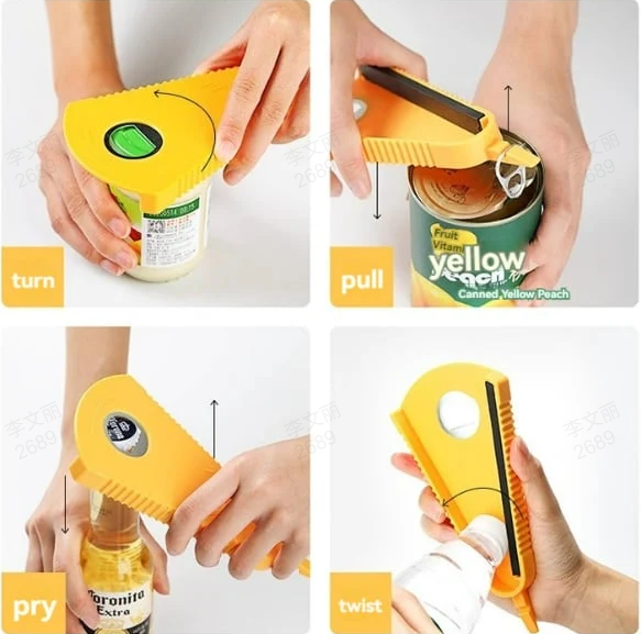 ✅️ Abridor versátil para todos os tipos de tampas: O Multi-Opener pode abrir seis tipos diferentes de tampas/fechos: sacos, fechos de segurança, tampas de frascos, tampas de garrafas, tampas de garrafas e tampas de frascos.