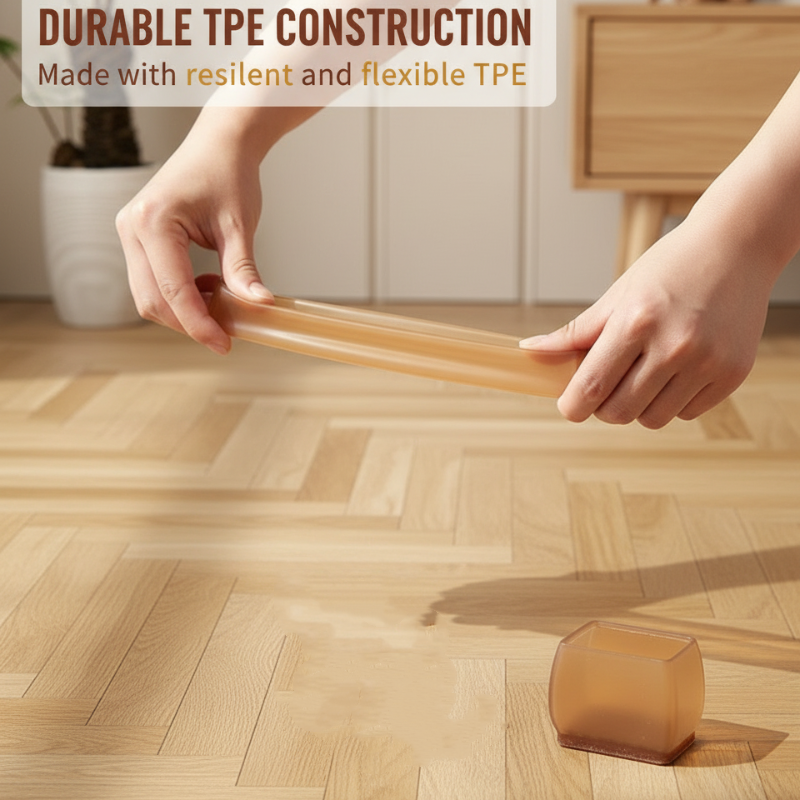 MATERIAL TPE DURÁVEL - Fabricadas em TPE flexível e de alta qualidade, essas capas se esticam para se ajustarem perfeitamente a vários formatos de pernas de móveis. O material resiliente proporciona uma aderência segura que evita que caiam durante o uso.