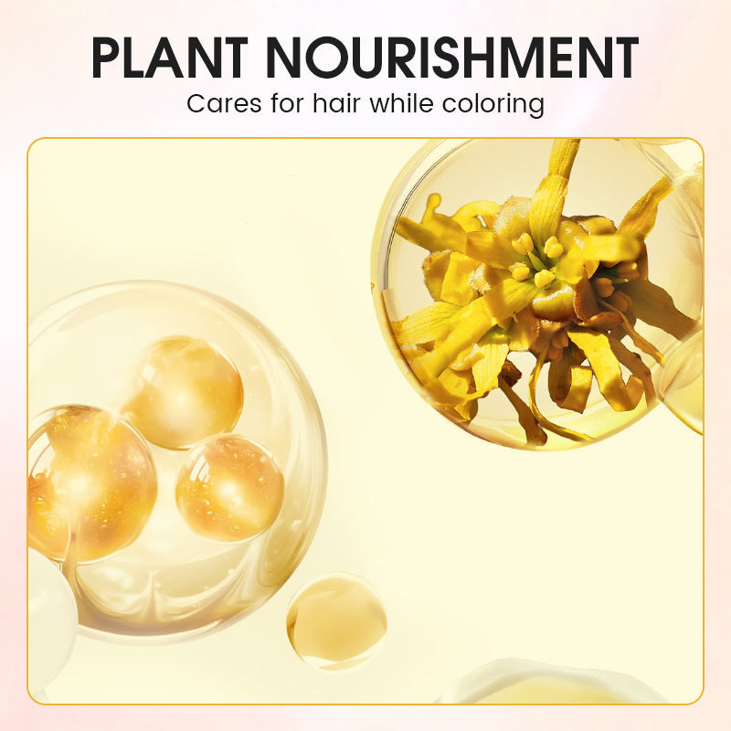 CUIDADOS COM PLANTAS - Muitos produtos de coloração capilar podem ressecar ou danificar o cabelo, mas o nosso nutre durante a coloração. Enriquecido com extratos naturais de plantas, fortalece e protege os cabelos, mantendo a maciez, o brilho e a saúde geral. O uso regular mantém o cabelo vibrante, macio e condicionado, combinando coloração eficaz com cuidado contínuo.