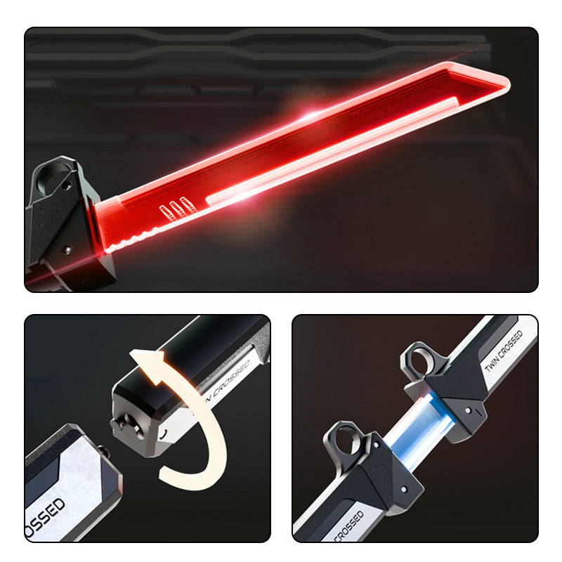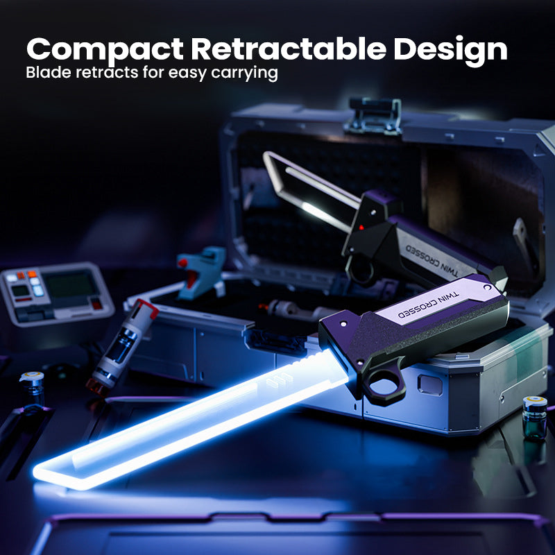 RETRÁTIL E COMPACTO - A lâmina se retrai com segurança no punho para fácil armazenamento e portabilidade. Leve sua arma futurística para qualquer lugar, pronta para ser usada em duelos espontâneos ou eventos de cosplay a qualquer momento.