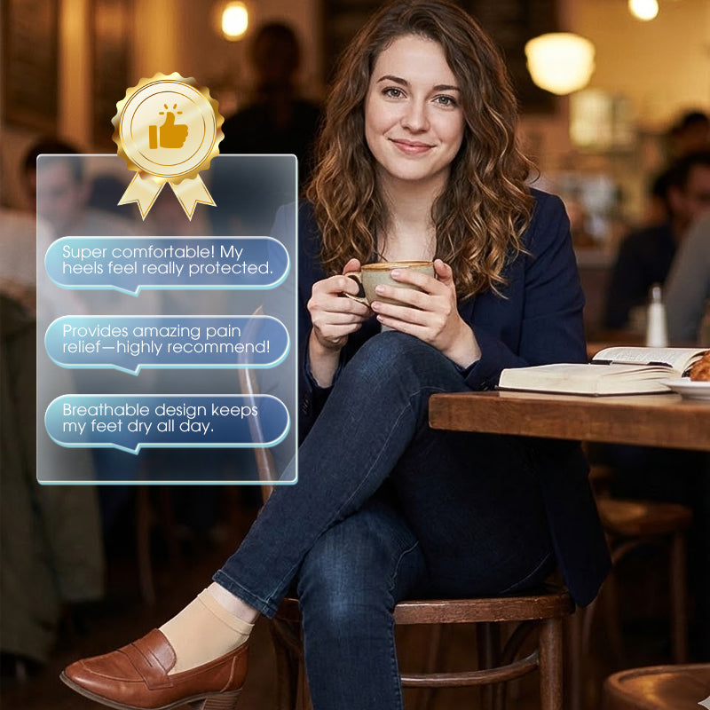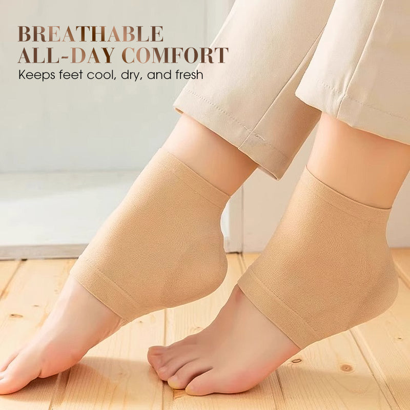 SILICONE DE BLOQUEIO DE UMIDADE: Forrado com silicone premium, hidrata e nutre profundamente a pele. Isto ajuda a reter a hidratação, reparando eficazmente calcanhares secos e gretados e revelando pés mais suaves e saudáveis ao longo do tempo.