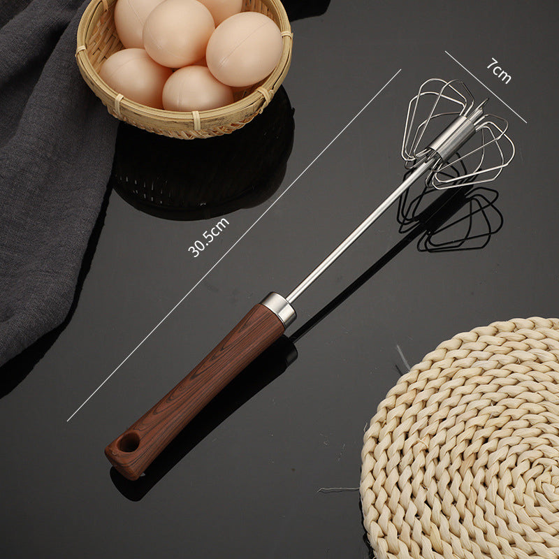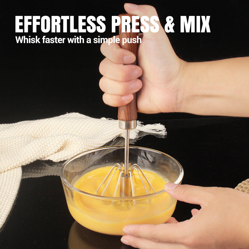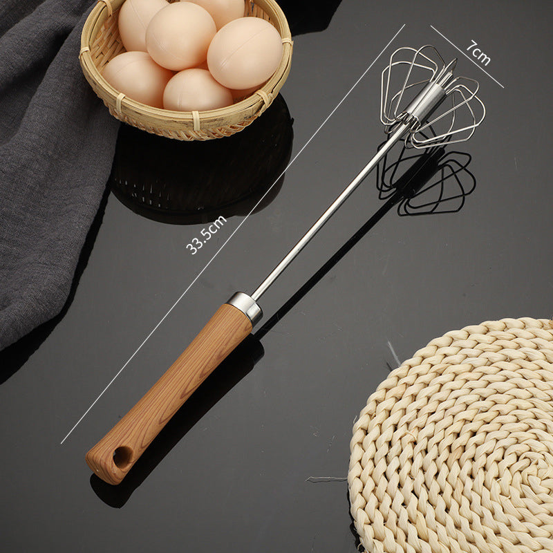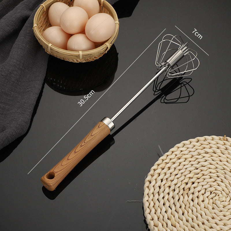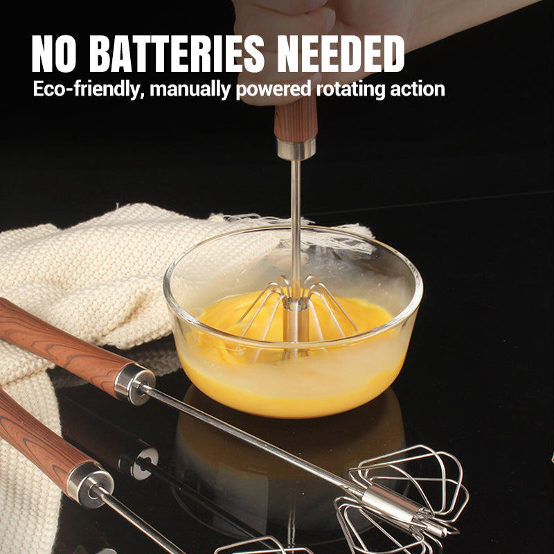 Batedor semiautomático de aço inoxidável com cabo de madeira