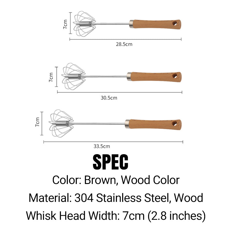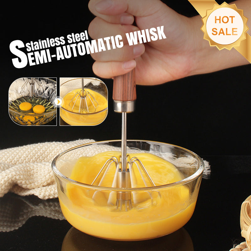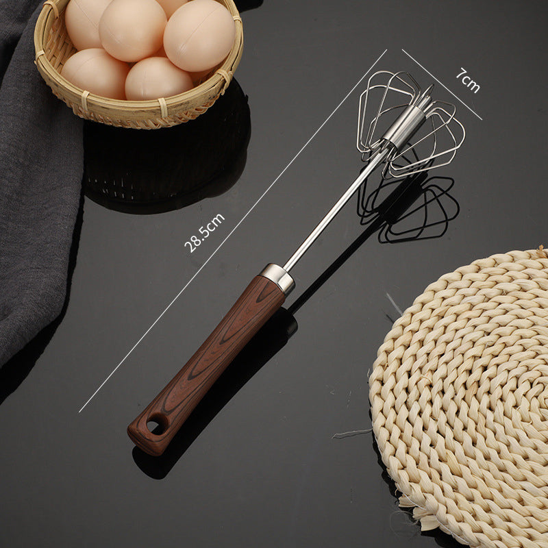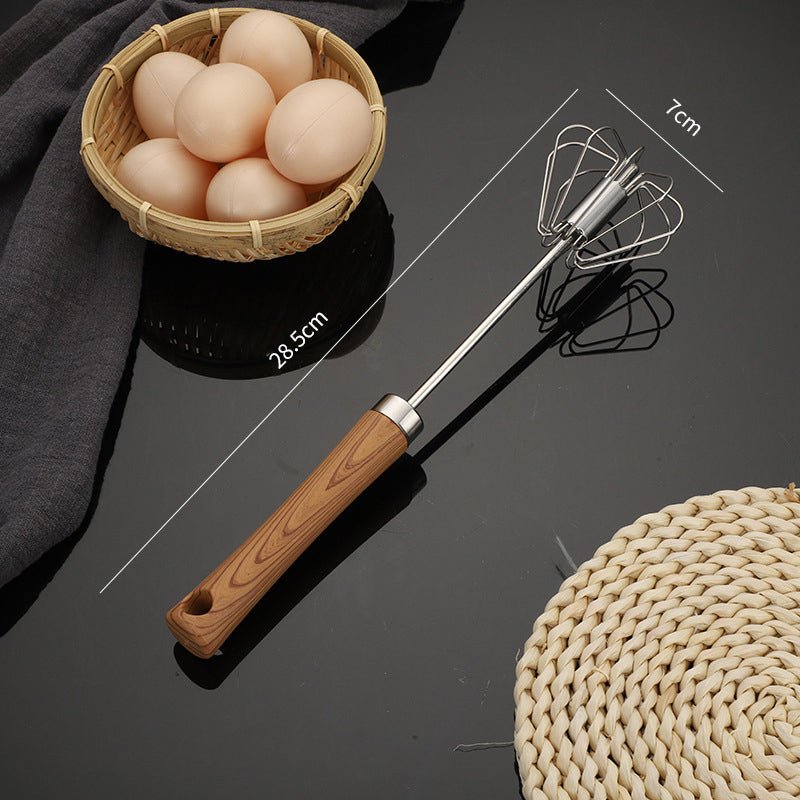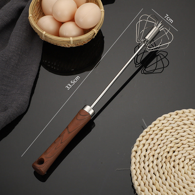 Batedor semiautomático de aço inoxidável com cabo de madeira