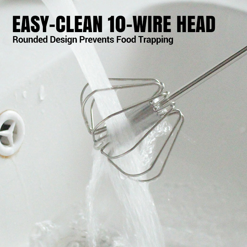 AÇÃO DE MISTURA SEM ESFORÇO - Basta pressionar a alça para iniciar a rotação de 360°. Este design semiautomático bate os ingredientes de forma rápida e eficiente, sem a necessidade de eletricidade, baterias ou movimentos extenuantes do pulso.