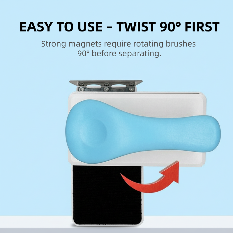 PODEROSA FORÇA MAGNÉTICA - Garante que as duas metades de limpeza permaneçam firmemente conectadas através do vidro, fornecendo um poder de lavagem forte e consistente sem que você precise molhar as mãos para uma limpeza completa.